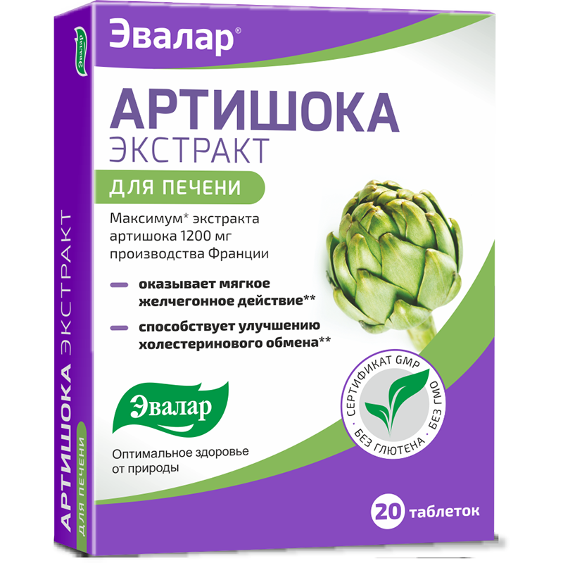 Артишока Экстракт: в составе листьев артишока содержится цинарин, хлорогеновая и кофейная кислоты, минеральные соли, полисахариды (до 80% которых составляет инулин), пектин, дубильные вещества, органические кислоты, калий, а также витамины А, В1, В2, С.Артишок, благодаря своему составу, обладает мягким желчегонным действием, поддерживает естественную защиту клеток печени.Экстракт артишока способствует:улучшению секреции и оттоку желчи,улучшению функционального состояния печени.Содержащиеся в артишоке инулин, аскорбиновая кислота, каротин, витамины В1и В2 поддерживают основной обмен веществ и оказывают положительное влияние на метаболизм липидов, благодаря чему артишок способствует:улучшению пищеварения, особенно при приеме значительного количества углеводов и жирной пищи,поддержке биохимических процессов в клетках печени,улучшению холестеринового обмена.Также артишок способствует выведению излишков жидкости из организма и помогает естественному обновлению клеток печени.Артишока экстракт – природный комплекс, способствующий улучшению функционального состояния печени.